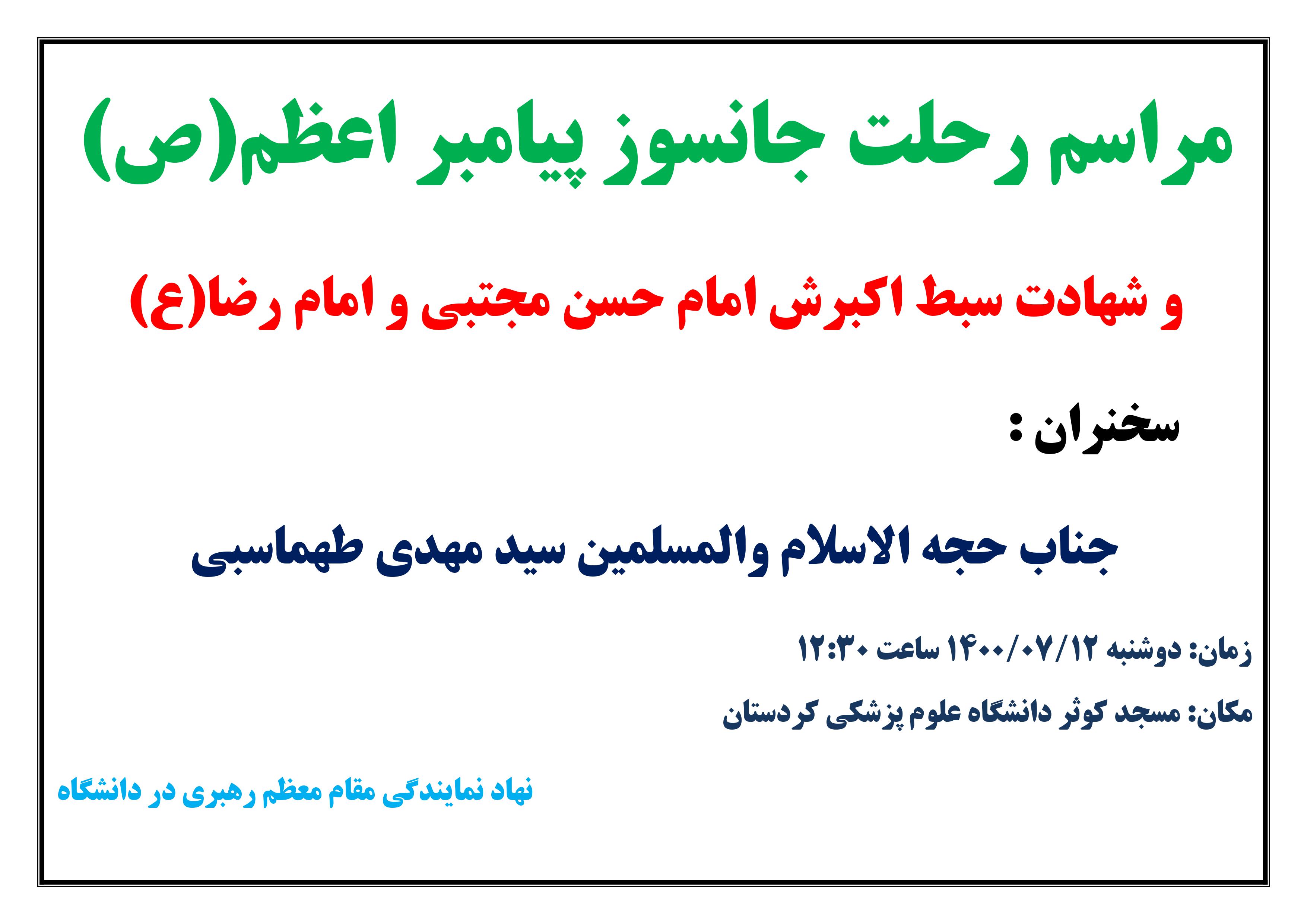 مراسم رحلت جانسوز پیامبر اعظم(ص) و شهادت امام حسن مجتبی و امام رضا(ع)