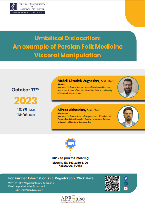 وبینار تخصصی بین المللی تحت عنوان Umbilical Dislocation: An example of Persian Folk Medicine Visceral Manipulation