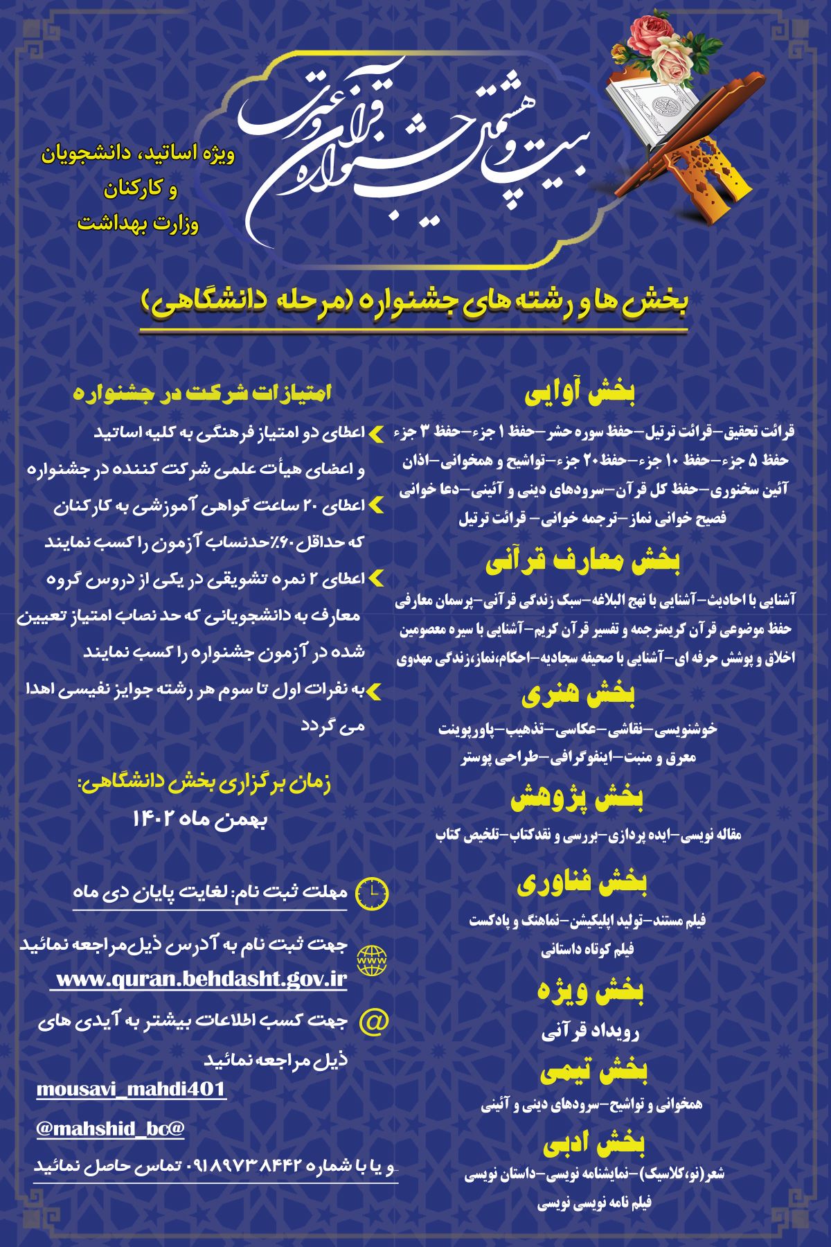 بیست و هشتمین جشنواره قرآن و عترت؛ ویژه اساتید، دانشجویان و کارکنان وزارت بهداشت