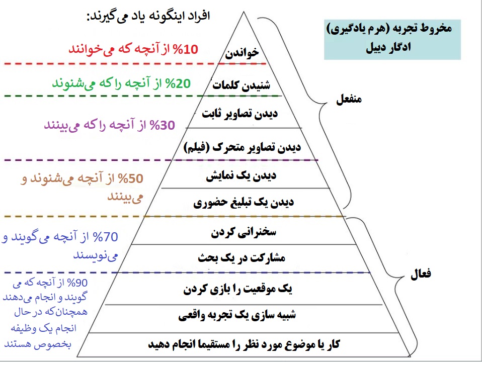 ینفوگرافیک مخروط تجربه (هرم یادگیری ادگار دیل کلیک.