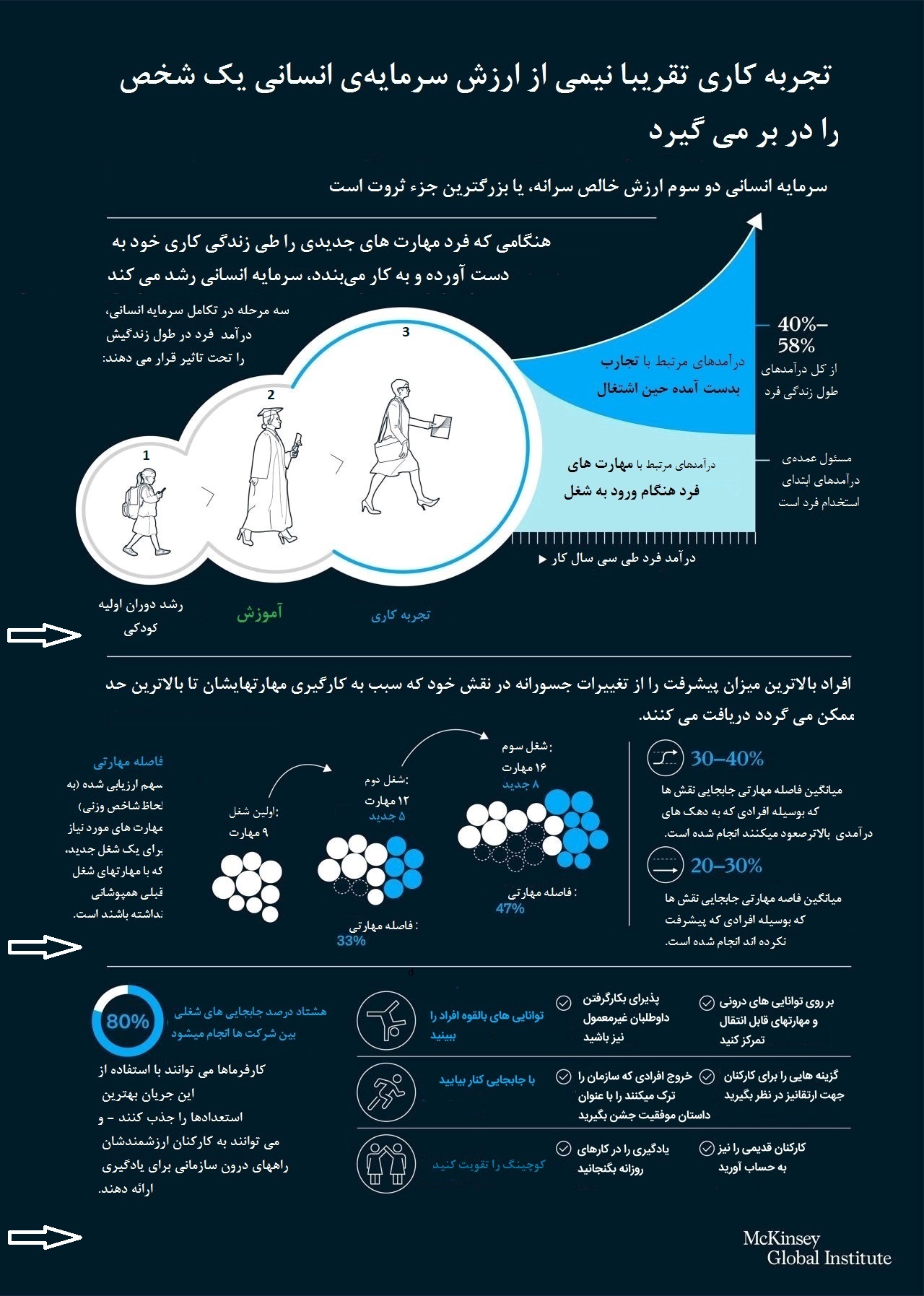 اینفوگرافیک (تجربه کاری تقریبا نیمی از ارزش سرمایه انسانی یک شخص را در بر میگیرد - McKinsey)، کلیک.