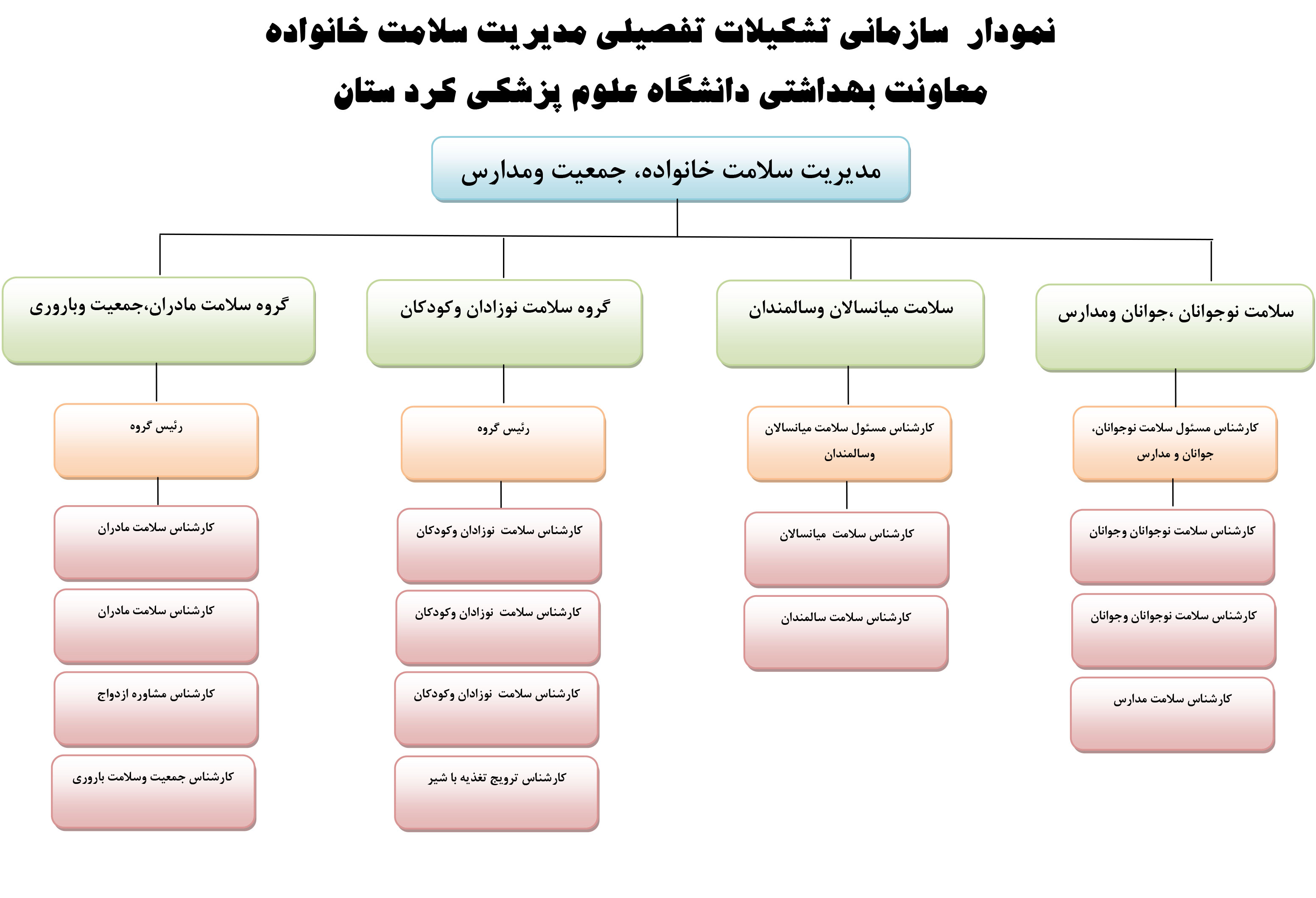 چارت سازمانی  مدیریت سلامت خانواده جمعیت و مدارس